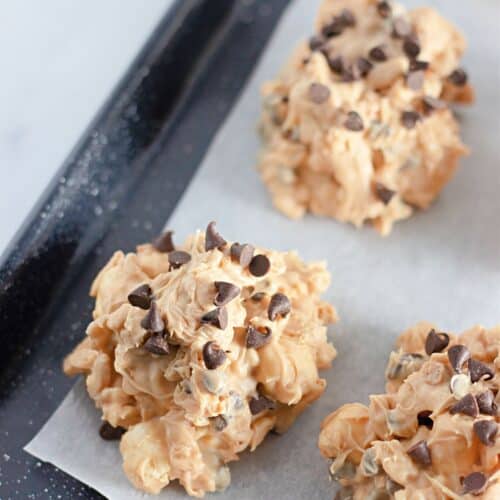 These no-bake Avalanche Crunch Cookies are a sweet symphony of textures and is creamy, crisp, chewy, and rich with chocolatey goodness. Made with smooth peanut butter, melty white chocolate, crispy rice cereal, gooey mini marshmallows, and a shower of mini chocolate chips, they’re the ultimate quick fix for dessert cravings. Ideal for parties, gift boxes, or stashing in your freezer for whenever you need a little indulgence.