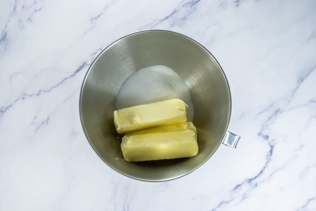 - Cream the softened butter and sugar in a stand mixer on high with the paddle attachment until smooth and fluffy.